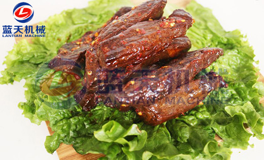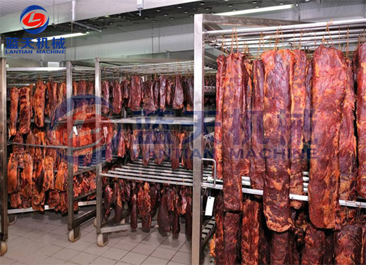 這一階段主要的制約因素是溫度的控制,為了加強干燥速度,溫度要升高到60到65度之間,烘干時間控制在10到12個小時,相對濕度控制在35%左右。牛肉烘干最終濕度控制在15%以下。