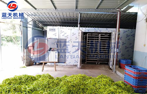 1、黃花菜烘干前要進行高溫殺青處理,前期1個小時內把溫度升到70°C,然后再烘干30分鐘左右。這1個小時內不排濕。