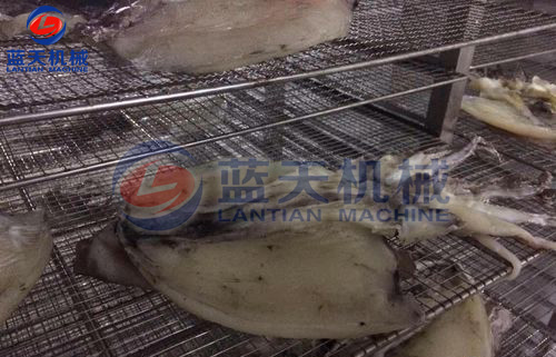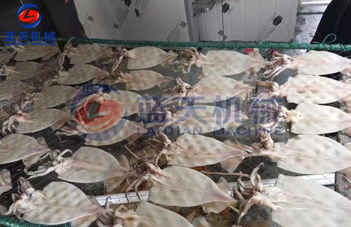 由于魷魚墨魚不僅水分大,而且水分存在于脂肪和油脂中,脫水就比其他類別的物料要更困難,而控制其脫水速度和排濕量是決定魷魚烘干質量的重要因素之一,脫水速度和排濕量的掌握對保持海產品烘干后的色澤尤為重要。魷魚墨魚烘干要避免水汽在魷魚體表停留,排濕不暢,而導致細菌滋生。