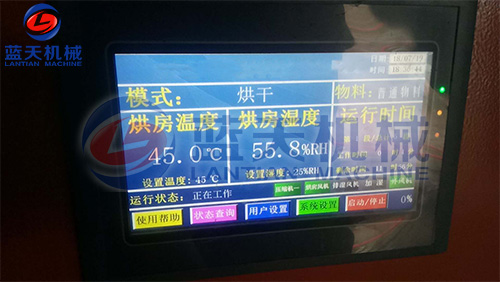 設置烘干參數:桑葚是高糖分、高水分含量的漿果,較長果形是由一個一個小果囊的形狀組成,水分難以出來,所以需要較長的時間。同時烘干溫度又不能太高,溫度太高,就容易影響花青素的有效含量。烘干第一階段溫升一小時,不排濕,烘干模式,讓烘干房上升至50度左右。第二階段設為烘干+排濕模式,目標濕度為60%,目標溫度設為55度。第三、第四階段每一階段上升5度,目標濕度下降10%,讓烘干房不斷排濕。最終一個階段目標濕度設為15%左右。如果條件許可,可以考慮在第四階段末了,停機靜置一段時間再復烘,這樣果干內部的水份滲出后被復烘的熱量加熱揮發,果干果形更好,同時總體能效更好。