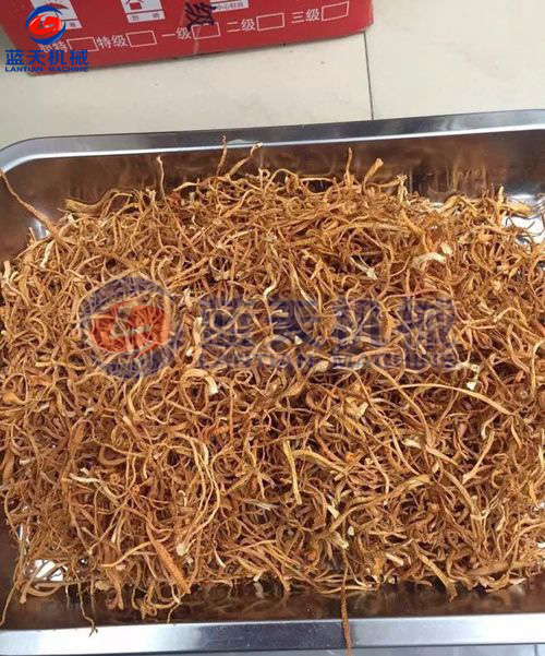 北蟲草應該使用烘干機進行烘干,烘干系統的潮氣排量不好,對子座體有高溫熟化膠質感觀,失去部分蟲草活性有效成分,因此,烘干過程中注意快速排潮氣,不然影響北蟲草內在質量及價格。