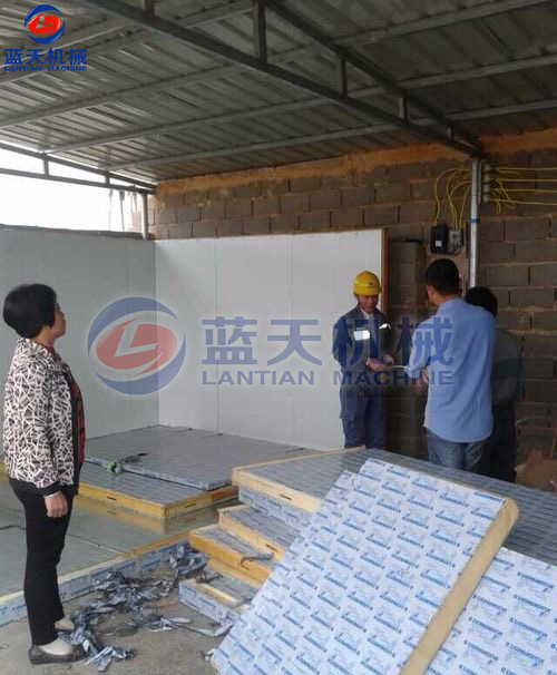 烘房板材包括底板和門板的厚度根據(jù)實(shí)際情況,可采用5-10公分左右的厚聚氨酯發(fā)泡板保溫,底板內(nèi)外鍍鋅板。一方面這種材料具有良好保溫效果的恒溫室,輕便安裝的同時,具有一定的耐磨和耐壓性能、在一般良好和惡劣的環(huán)境中都能夠適應(yīng)。使用年限十年以上;另一方面能確保烘干房循環(huán)均勻風(fēng),保證物料在一個緩慢均勻的環(huán)境中實(shí)現(xiàn)水分的蒸發(fā),保證在整個烘干房內(nèi)物料的烘干均勻度。