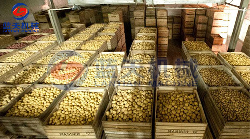 (6) 烘干:將處理好的馬鈴薯丁或薄片攤放烘盤上,厚度10~20mm,置于騏成全智能化烘干房中,溫度為65~70℃。干燥后期溫度勿超過(guò)65℃,完成干燥需要5~8小時(shí)。含水量降低到7%以下,即已完成干燥過(guò)程。