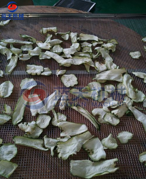 將物料車推入烘干房,設(shè)定熱泵烘干機(jī)運(yùn)行參數(shù),烘干過程前段1-2小時(shí)以升溫為主,中段開始升溫加除濕,持續(xù)16小時(shí)后,烘干期間注意觀察佛手片的實(shí)時(shí)烘干情況,直到佛手片烘干成功。整個(gè)過程無(wú)人值守,用主機(jī)可以實(shí)現(xiàn)整個(gè)系統(tǒng)的烘干除濕自動(dòng)進(jìn)行,期間無(wú)污染物排放,節(jié)能環(huán)保。