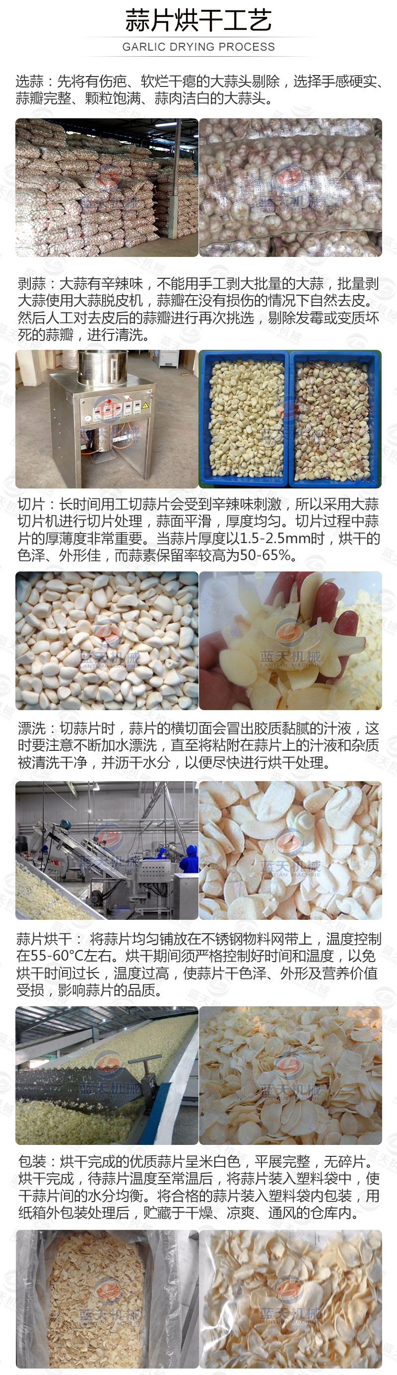 【帶式蒜片烘干機烘干蒜片步驟:】