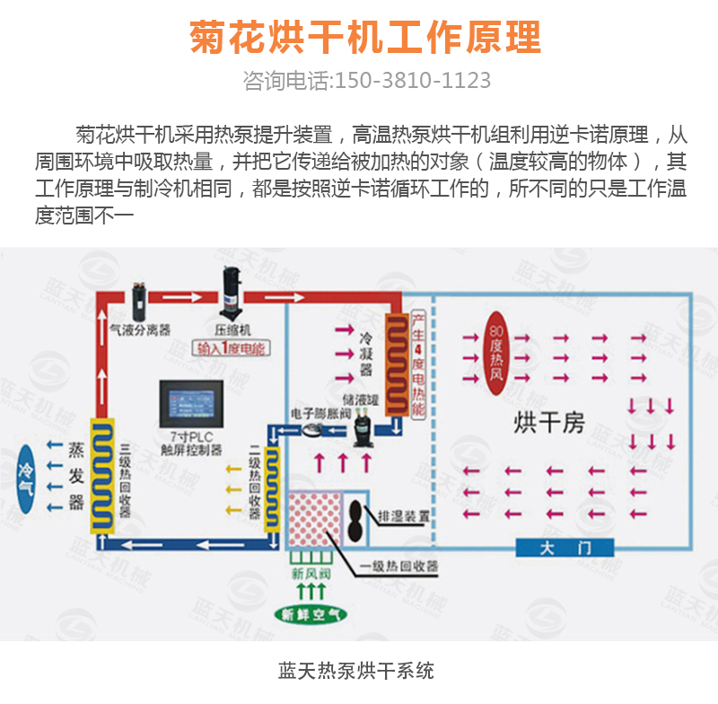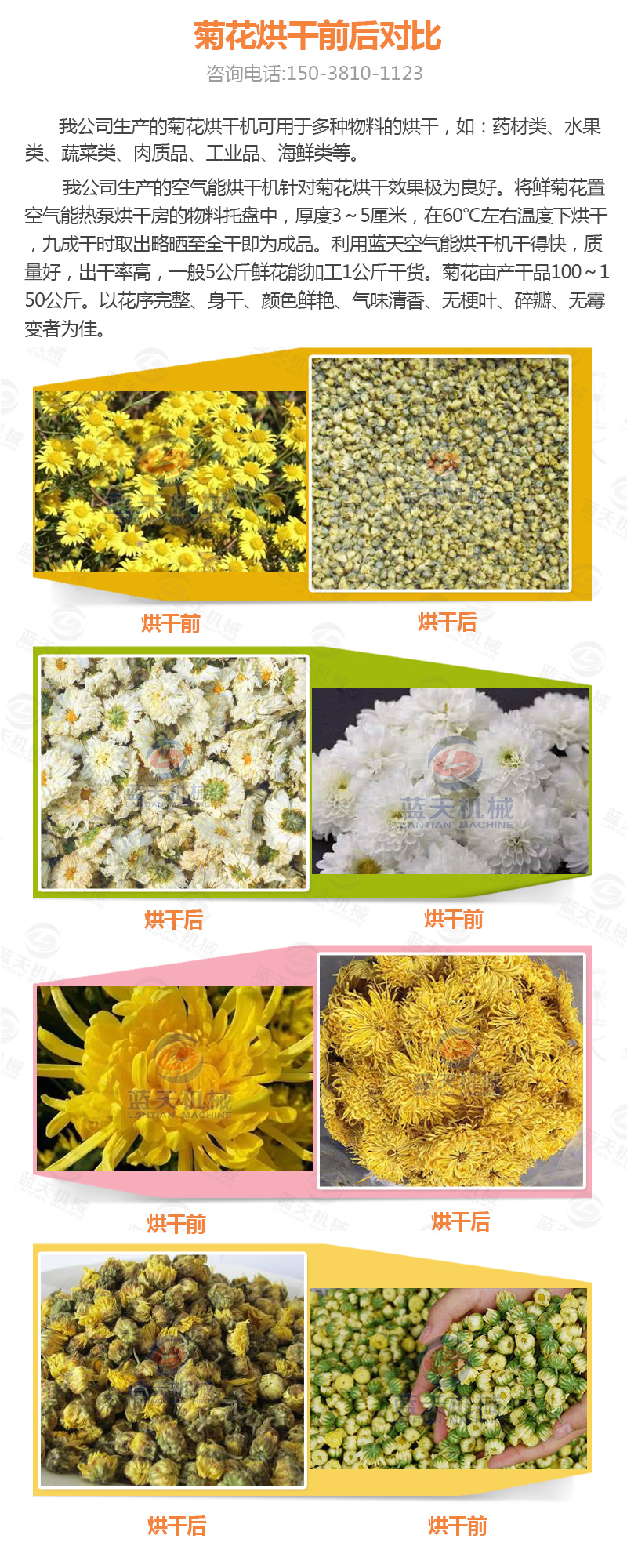 一、菊花烘干機采用熱泵烘干,符合環保需求以往有客戶采用煤加熱或其他柴加熱的烘干機來烘干菊花,這些烘干方式污染大,政府提出了以電能替代以往的燃煤、燃氣加熱的烘干機,菊花烘干機可以選用以電為熱源來烘干菊花比較合適。目前,以電為熱源的菊花烘干機設備有電加熱菊花烘干機和空氣能熱泵菊花烘干機。