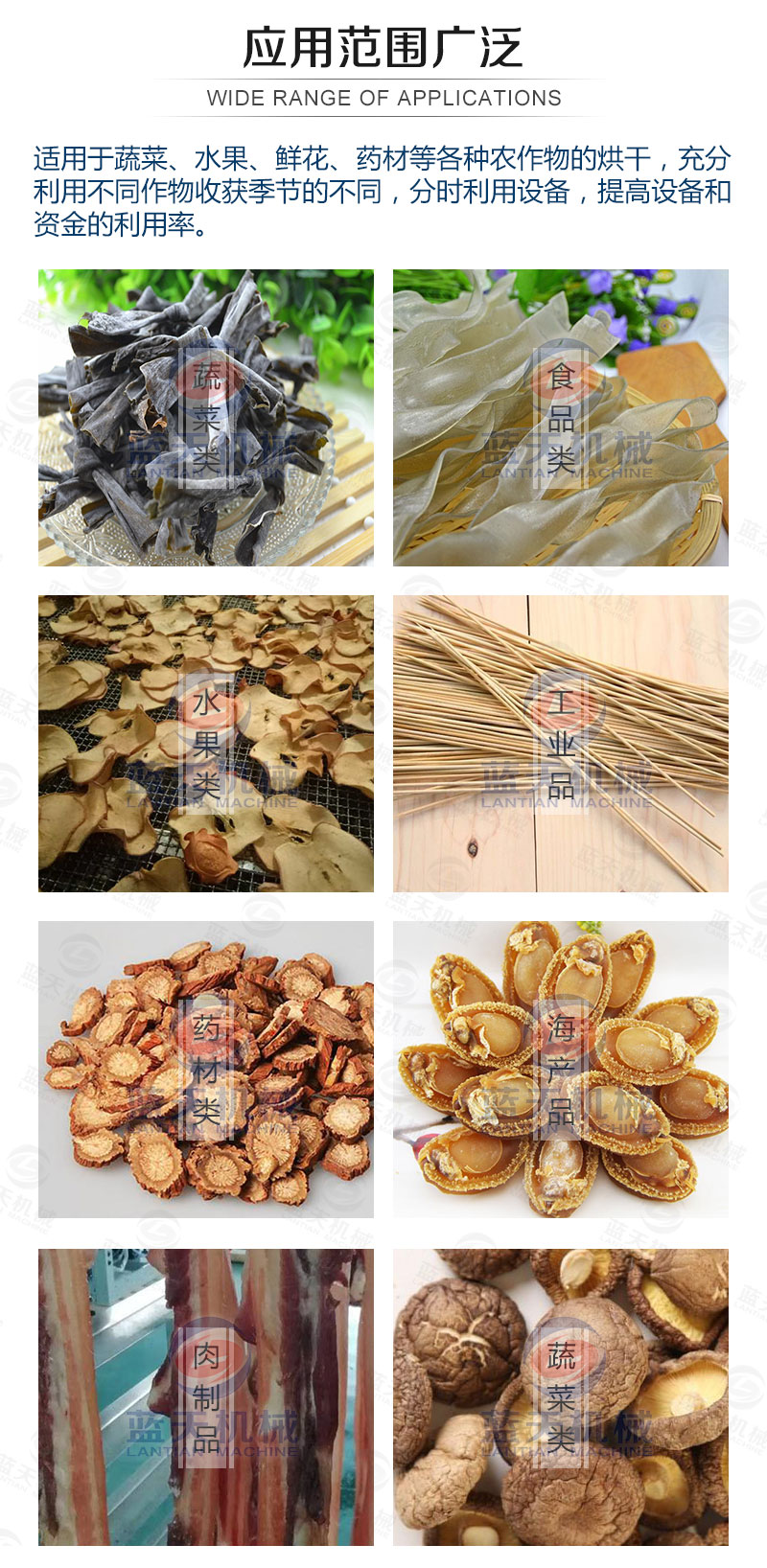 1、溫度—海帶的烘干一般要求比較低的溫度下進行,以避免高溫影響產品烘干后的質量。