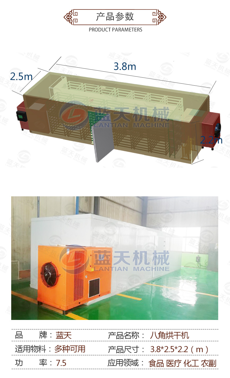 有的客戶八角產量數萬噸,如果選用大型八角烘干機,在幾天-1個月的時間內就可以完成全部八角的烘干,且大型八角烘干機的烘干效果很棒,色澤、破損率、香味都保持的不錯。講到這里,大家應該就會知道八角烘干機有不同型號的,那對八角烘干機多少錢來說,就是看機型而異了,如果您對八角烘干機感興趣有需要,歡迎您聯系我們進行咨詢。