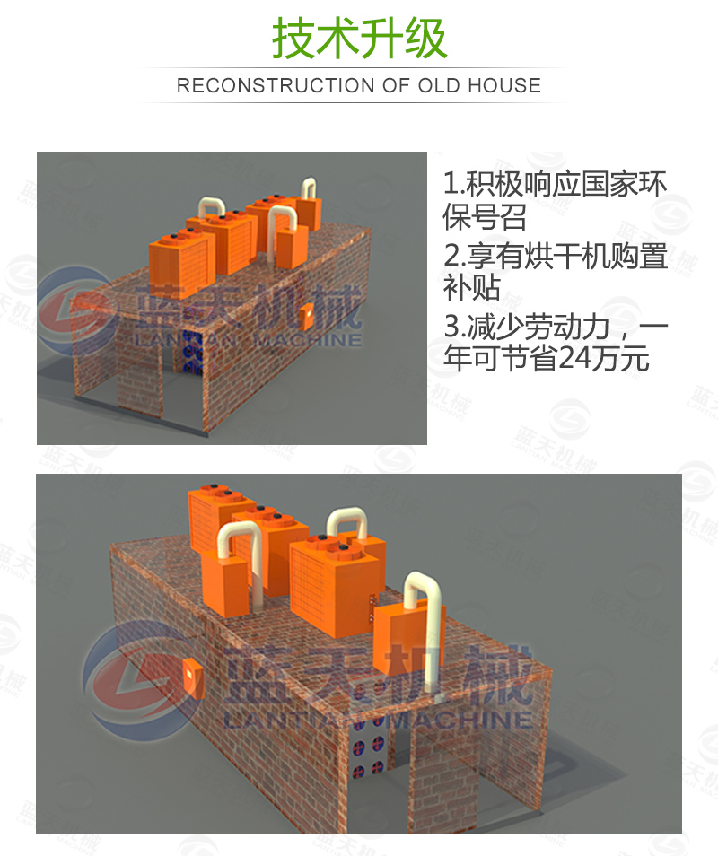 當大型黃花菜烘干設備開始持續排水后,注意觀察水流大小和相對濕度比值,繼續升溫,溫度上升到60度,持續5小時。
