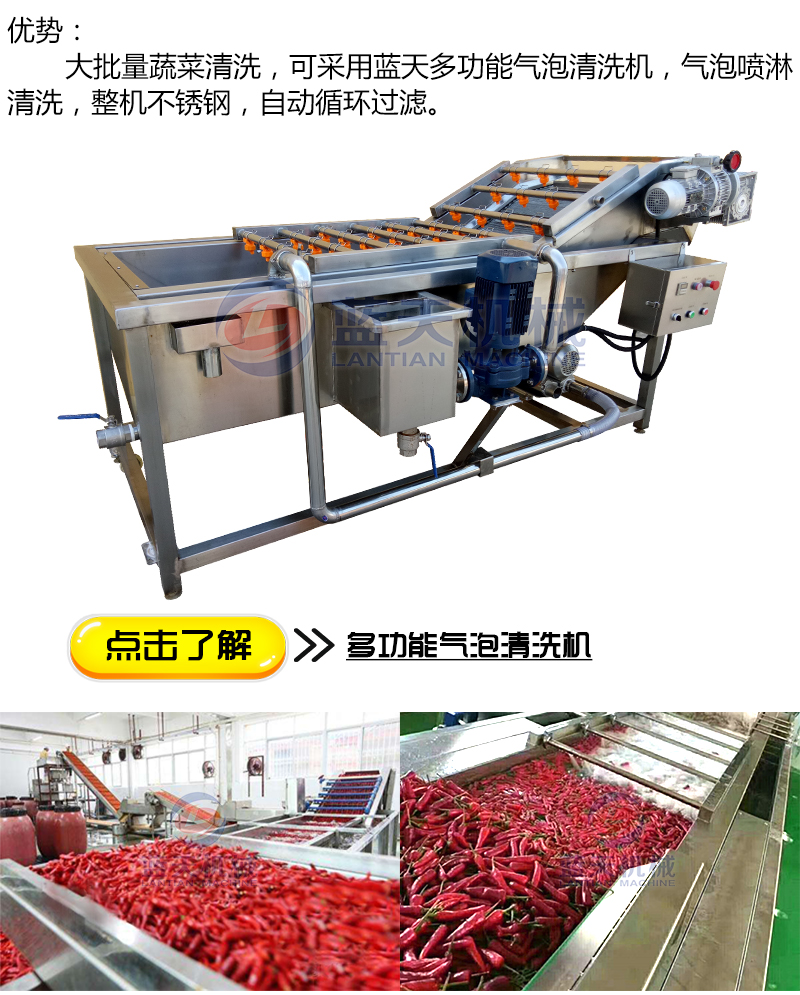 三:挑出辣椒中摻雜的莖葉后,對(duì)辣椒進(jìn)行清洗。