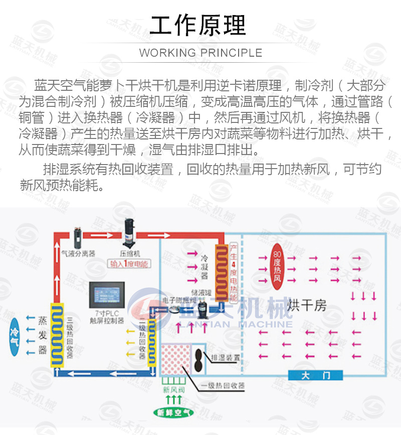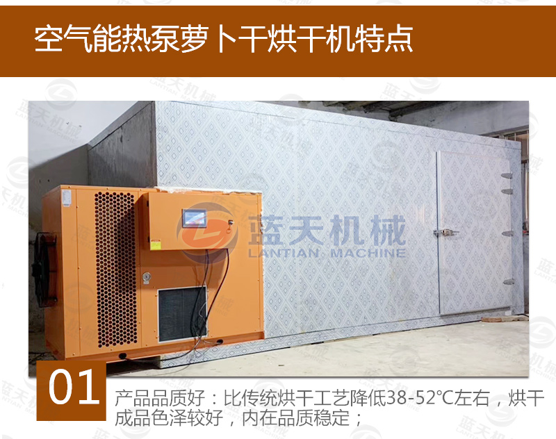 空氣能熱泵蘿卜干烘干機(jī),在蘿卜干烘干過(guò)程中的優(yōu)點(diǎn):