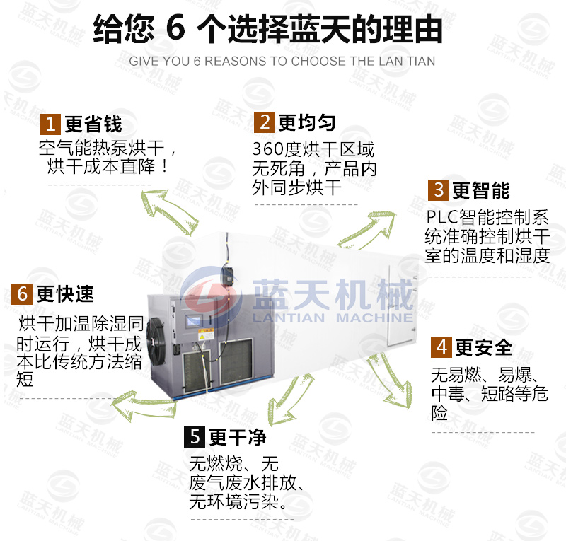 2、烘干時(shí)間短。高溫?zé)岜煤娓擅撍卟松a(chǎn)工藝,所需用的時(shí)間不會(huì)超過(guò)8h,一般從預(yù)熱到出產(chǎn)品4h即可完成。